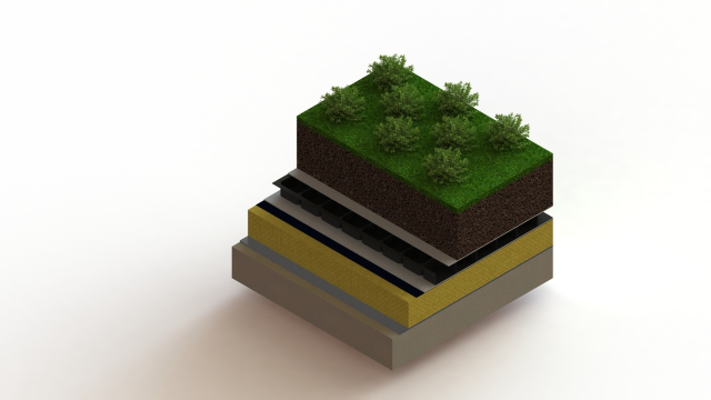 Ein üppiger Dachgarten mit Bäumen und Büschen bis zu 2 Meter und eine Dachfläche die Sie vergessen lässt, dass Sie sich auf einem Flachdach befinden.